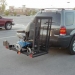 he E-Z Carrier Fold-Up Lift with Ramp allows you to take your scooter or power wheelchair with you at a great price and it is made in the USA so you can be assured that it is a dependable quality product. This carrier is designed for those who wish to take their mobility product on trips but do not have the room to put the scooter in their car, van or SUV. This scooter carrier's 42 inch ramp allows for easy loading and unloading and it now features a safety rail and redesigned ramp bracket that snaps into place. It also features an anti-wobble bolt hardware with 3/8" diameter hole standard. The simple yet functional design requires no batteries, motors or actuators. Simply fold the ramp down, load the scooter, fold up the ramp, strap and go!
